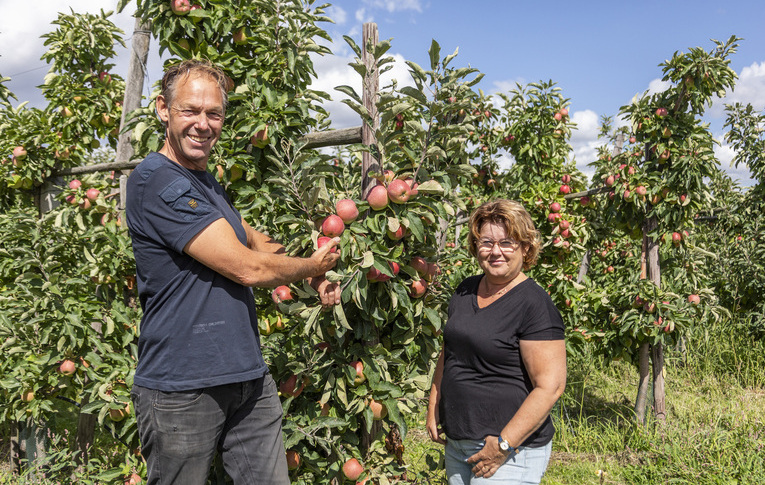 Na hun lidmaatschap bij de veiling enkele jaren daarvoor te hebben opgezegd, sloten Marc en Monique zich in 2020 aan bij Oxin Growers. Hun motivatie is tweeledig. “Enerzijds zorgt aansluiting bij de telerscoöperatie voor betalingszekerheid en ondersteuning op praktisch terrein. Daarnaast bieden ze support bij bijvoorbeeld duurzaamheidsvraagstukken, inkoop en certificeringen.” Fruitbedrijf Bloeiend Merm verkoopt alle oogst via Oxin Growers aan verschillende afnemers. “Ik vind het heel plezierig werken met Oxin Growers. Vooral de vrijheid spreekt me aan. Ze geven veel ruimte om je eigen bedrijfsvoering te doen. Dat is ook één van de redenen dat we voor hen hebben gekozen. Ze gaan niet op onze stoel zitten, dat moet ook zo blijven wat mij betreft. Het zit in hun DNA: de vereniging is destijds opgericht door nuchtere telers, die begrijpen hoe het werkt.”